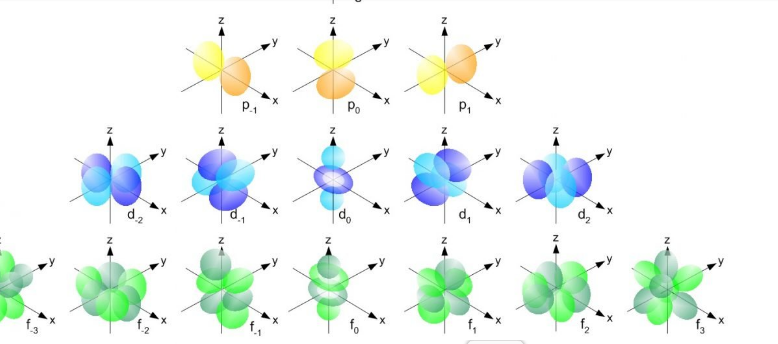 - 角量子數 ℓ(0 到 n-1)→ 決定形狀(s, p, d, f)