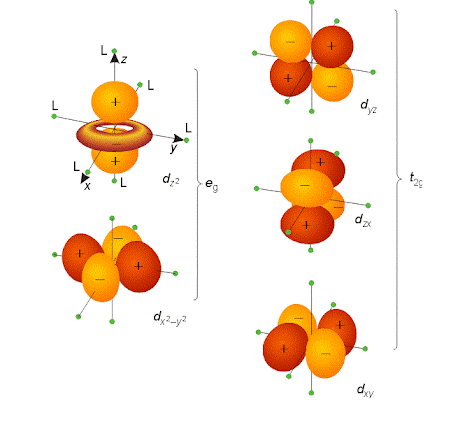 - 原子軌域: 指的是單一原子中電子出現的機率區域,例如